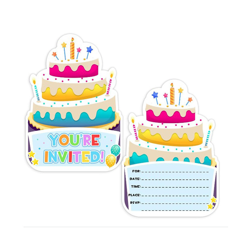ケーキのテーマ誕生日招待状は封筒なし、子供の誕生日パーティー招待状は、男の子や女の子に適しています