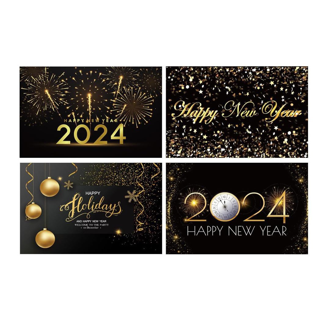 2024年新年グリーティングカード幸せな新年グリーティングカード冬の休日グリーティングカード家族新年パーティーギフト