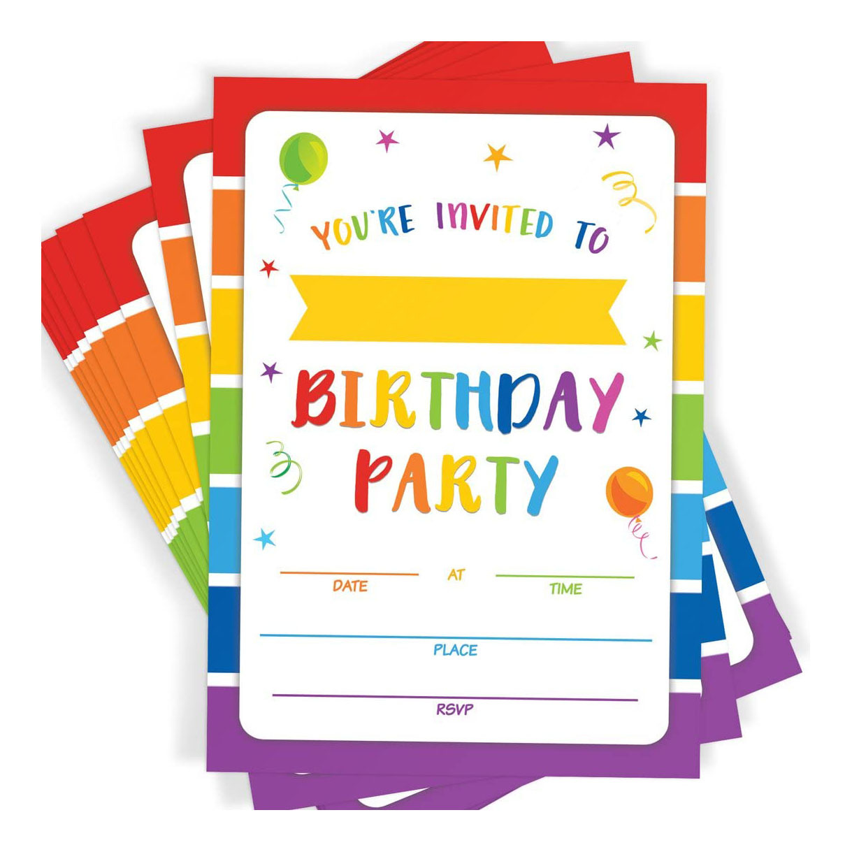 国境を越えた虹アニメパーティーの子供の誕生日虹招待状は封筒を持っていない