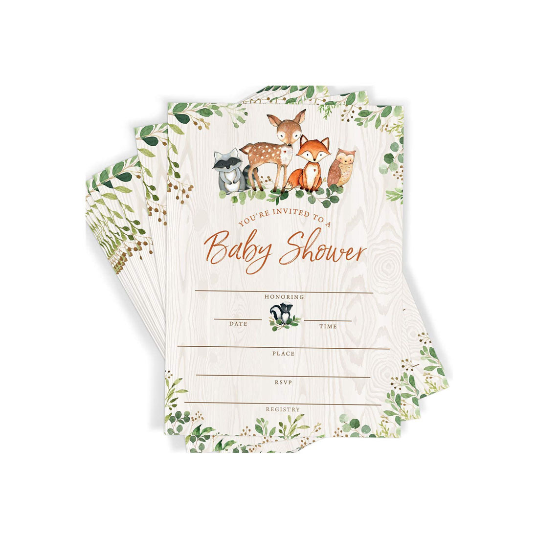 森の动物パーティー子供诞生日レインボー招待状と封筒