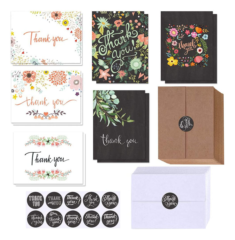 感謝カード封筒シール付き花卉水彩書道デザイン結婚式花嫁ベビーシャワー感謝祭パーティー