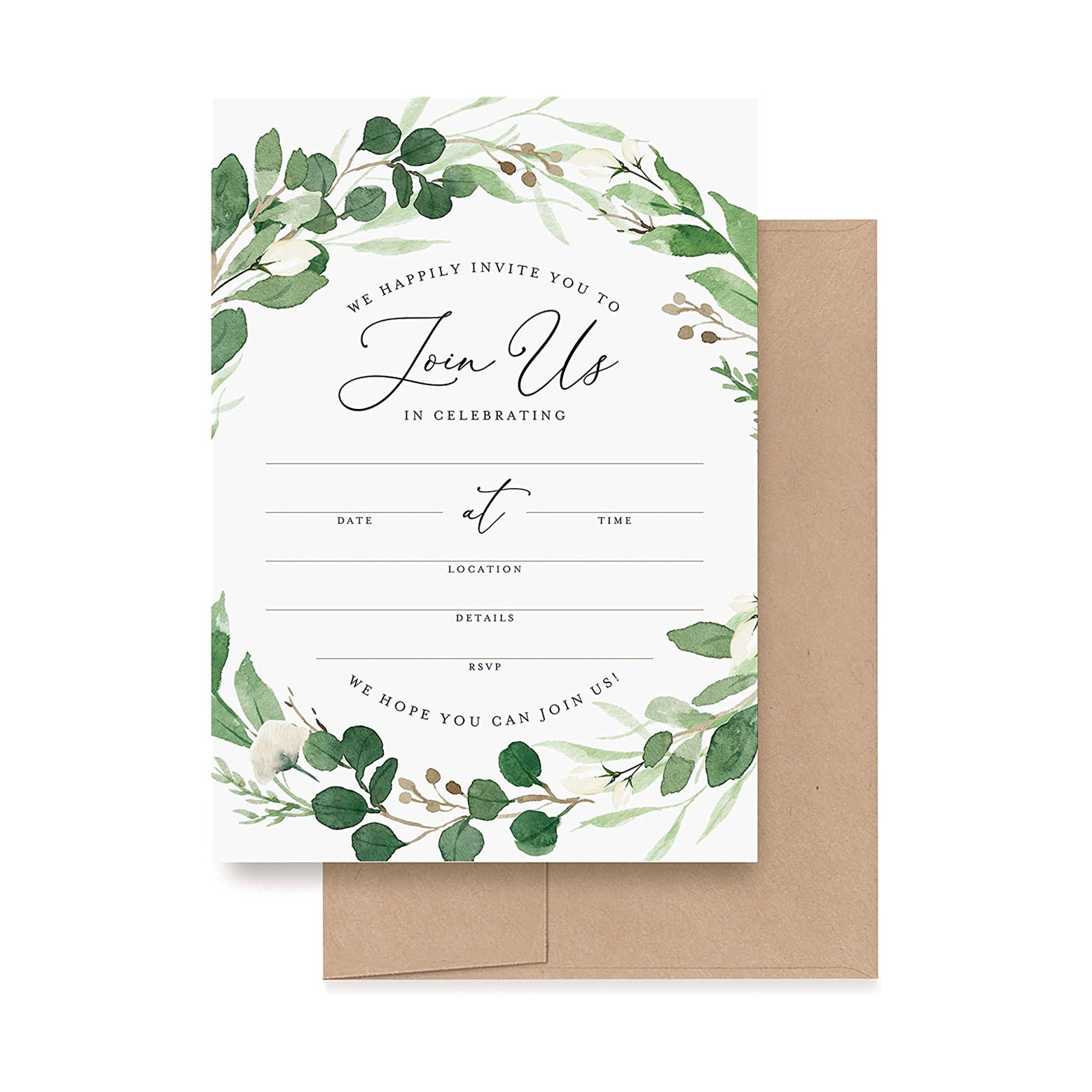 草花招待状封筒なしユーカリ緑葉招待状結婚式花嫁プレゼント会婚約誕生日パーティー