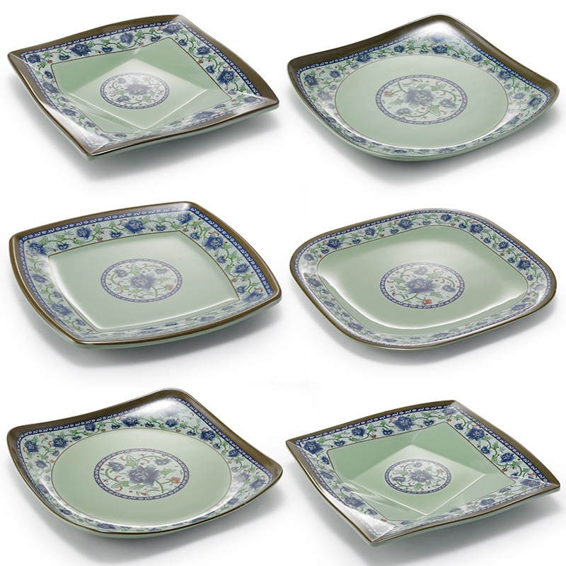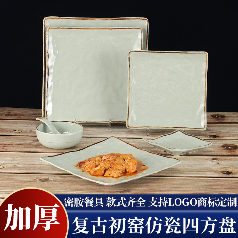 中国式のレトロな正方形のメラミンの皿は厚いです。