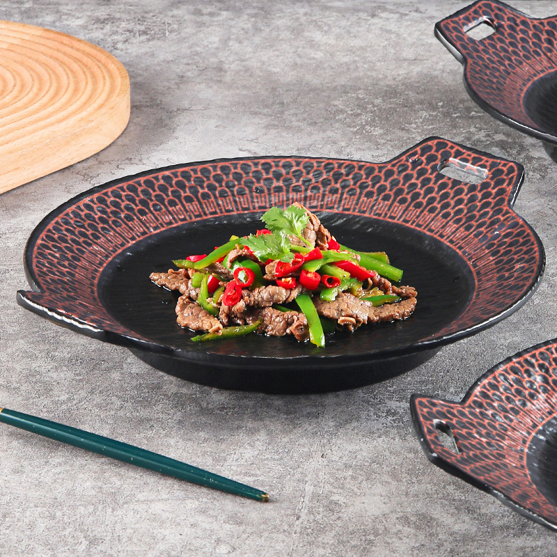 メラミンの皿の双耳は磁器の日本式の料理の皿の洋食の料理の皿をまねます。