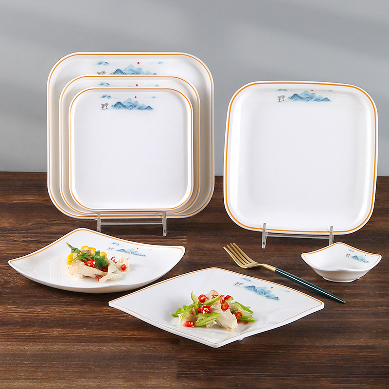 メラミン皿家庭用高颜値模造セラミック料理皿ホテルレストラン四角い皿丼皿プラスチック料理皿