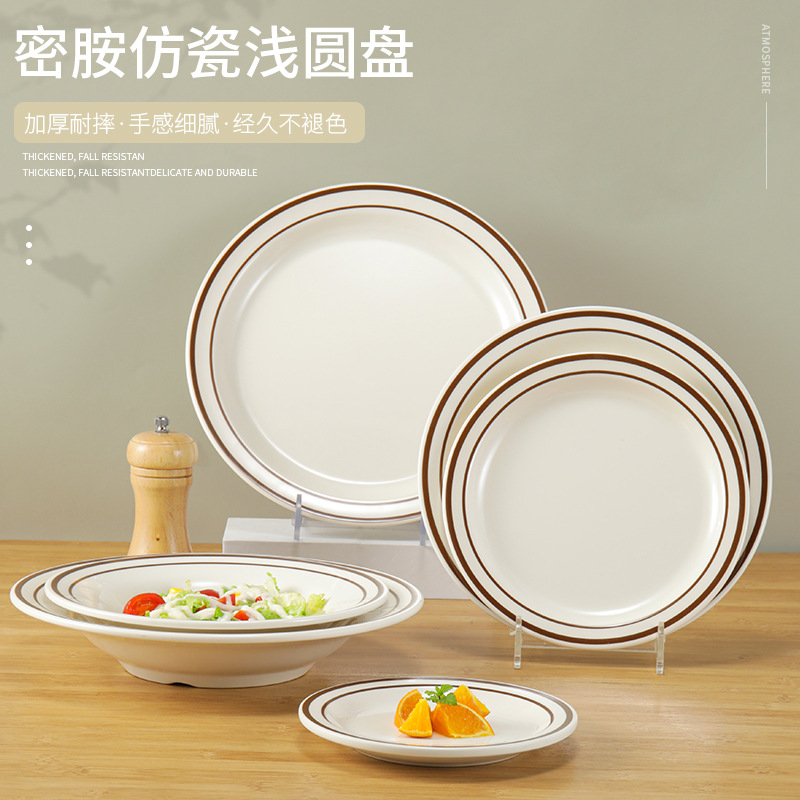 メラミン食器皿プラスチック円盤ホテルレストラン模造磁器円形スープ皿料理皿洋食皿平皿商用