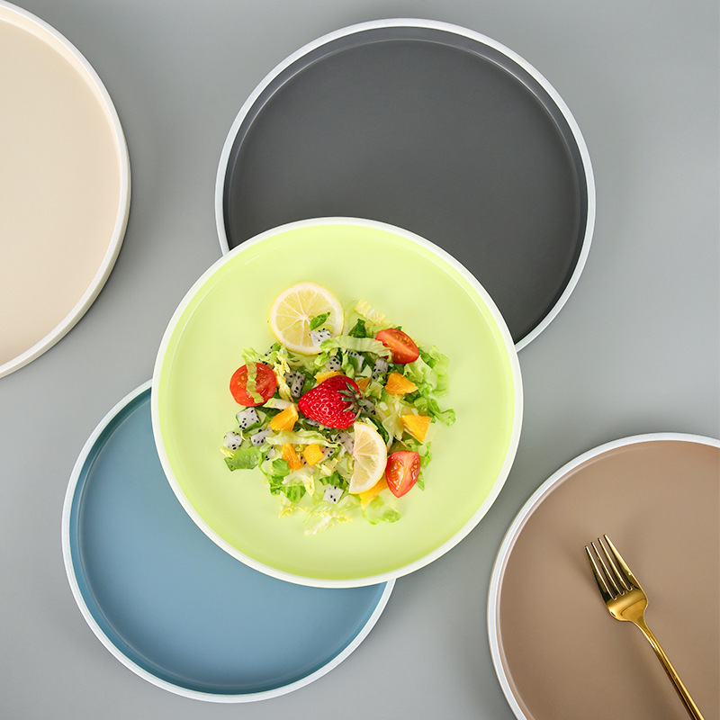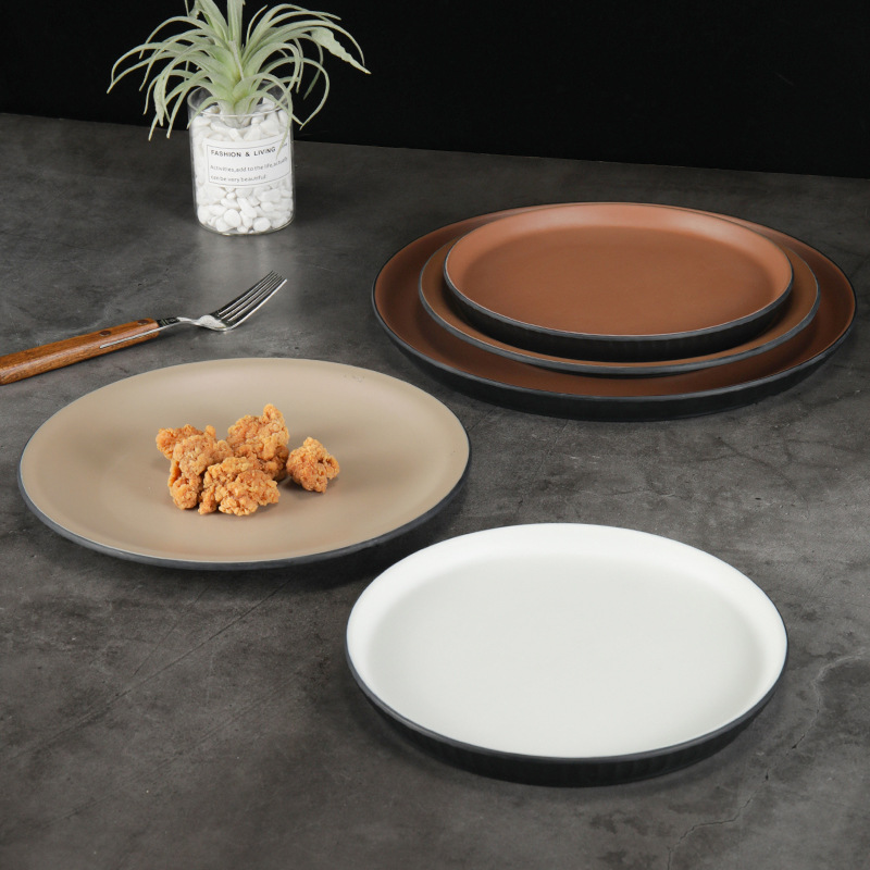 北欧風洋食ステーキ皿家庭用A5メラミン皿模造磁器サラダパスタ焼肉皿円形平皿卸売り