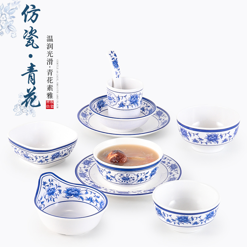メラミン鍋店には、青花プラスチックの模造磁器食器皿ホテルの食器レストランセットが4点セットになっています