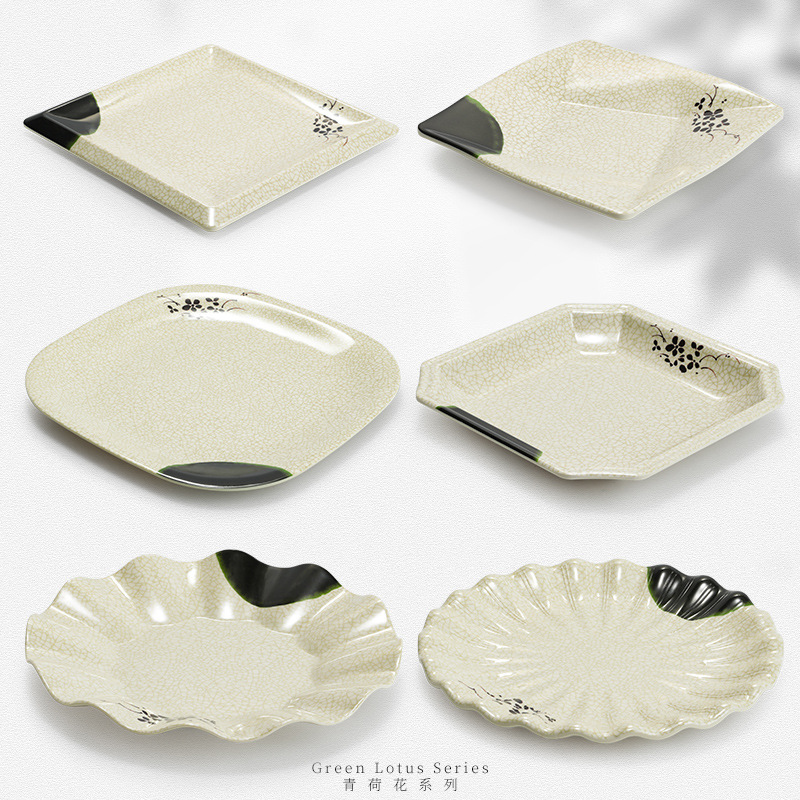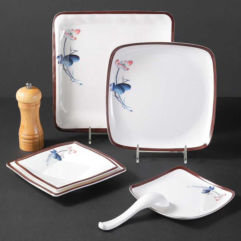 凱柏雅は磁器のプラスチックの四角い料理の皿のレストランのファーストフードの前菜の皿の丼の皿のメラミンの皿をまねます。