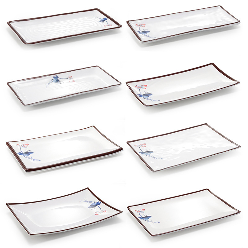 プラスチック長条平盤寿司皿鍋焼き皿業務用メラミン長方形皿模造磁器凉菜皿