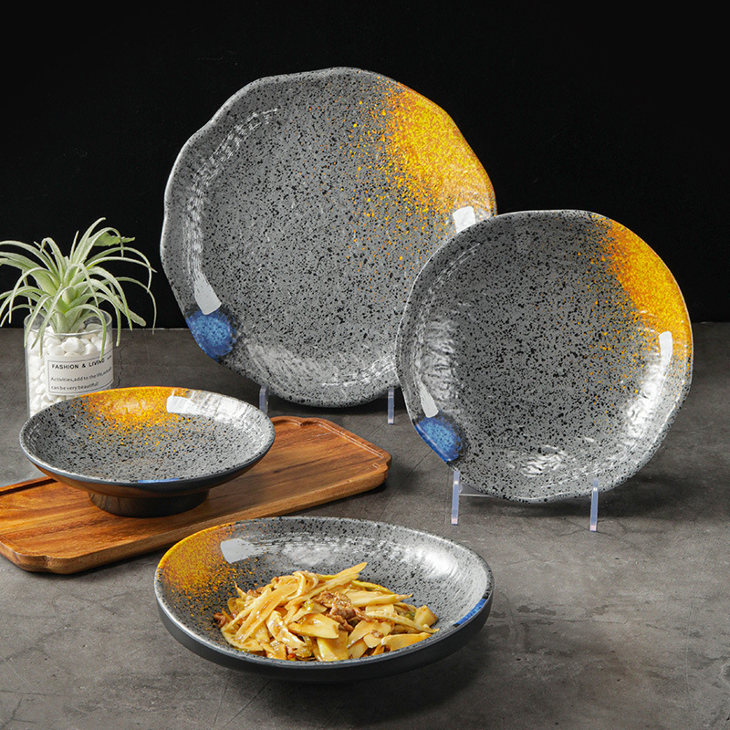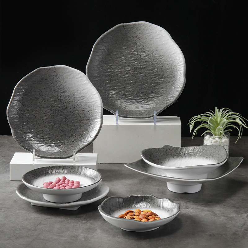 創意ホテルの特色のある丸い凹みの皿は磁器の炒め物の皿の境地の料理の皿のホテルの冷たい料理の皿の商用のメラミンの食器をまねます。