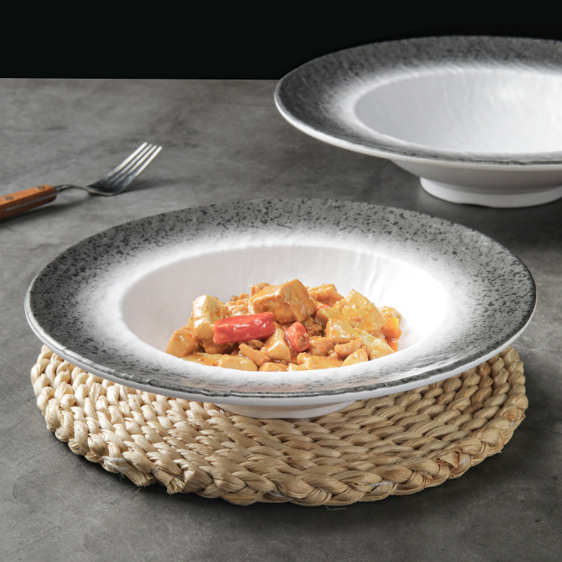 深皿創意食器レストラン料理皿スープ皿洋食皿サラダ皿パスタ皿メラミン模造磁器麦わら帽子皿