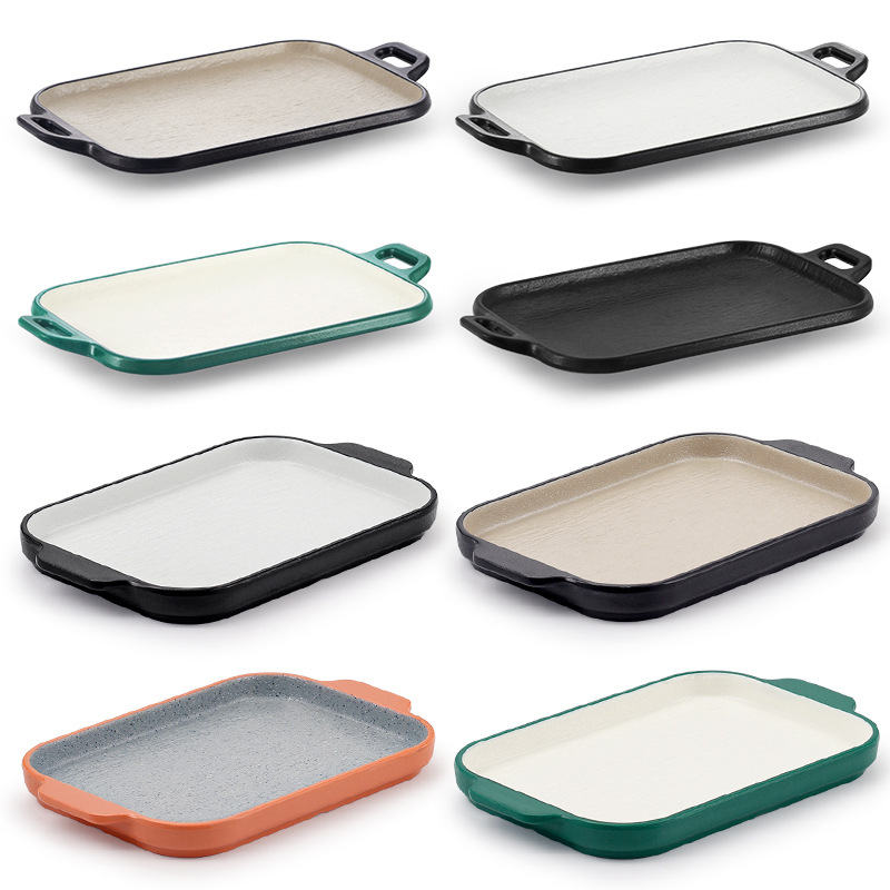 創意的なフライパンのネットは食器を食べて皿の焼肉の皿を持ってハンドルを持ってメラミンのまねる磁器の皿を持ちます。