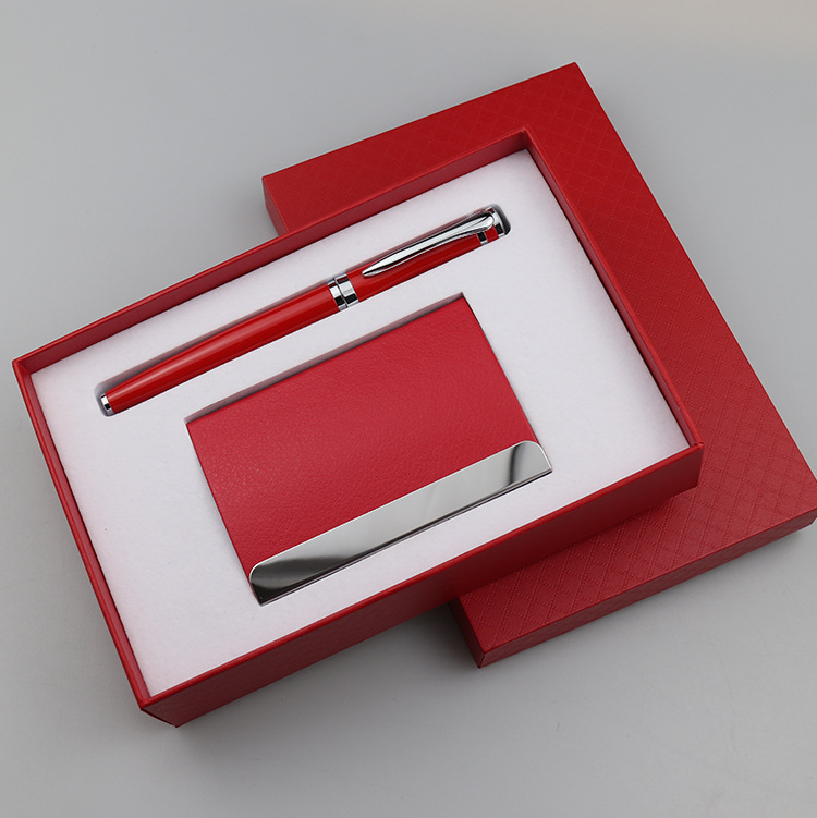 メーカー直販クラシックギフトビジネス名刺入れセット景品pu皮名刺入れケースケースケース金属サインペン