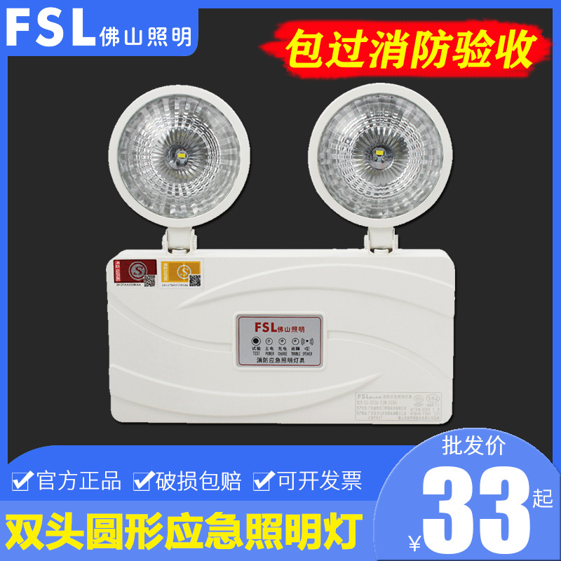 仏山照明ダブルヘッド円形緊急照明灯具消防緊急避難指示灯停電充電灯