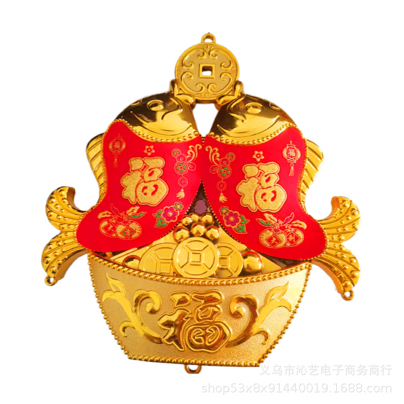 結婚祝いの春節の新型の売れ筋は大きいサイズの金メッキの蓮の双魚の福の字を飾って金色の祝い事の掛け物の工芸のアクセサリを飾ります。