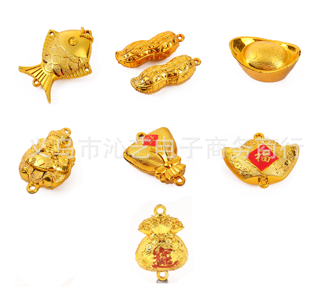 2019年豚年春節小金元宝福袋財神爺部品金メッキ招財中国結部品装飾入宝