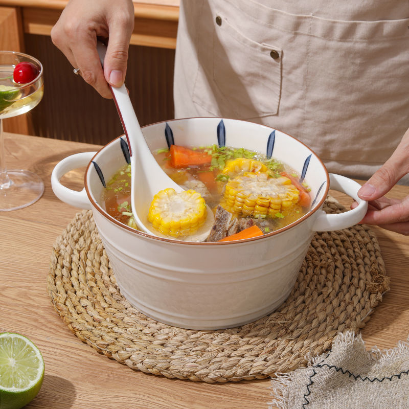 千叶の両耳のスープの碗の大きいサイズの8インチの家庭用ネットの赤い陶磁器の泡の碗のスープのたらいはやけどを防ぐ日本式の食器のins风