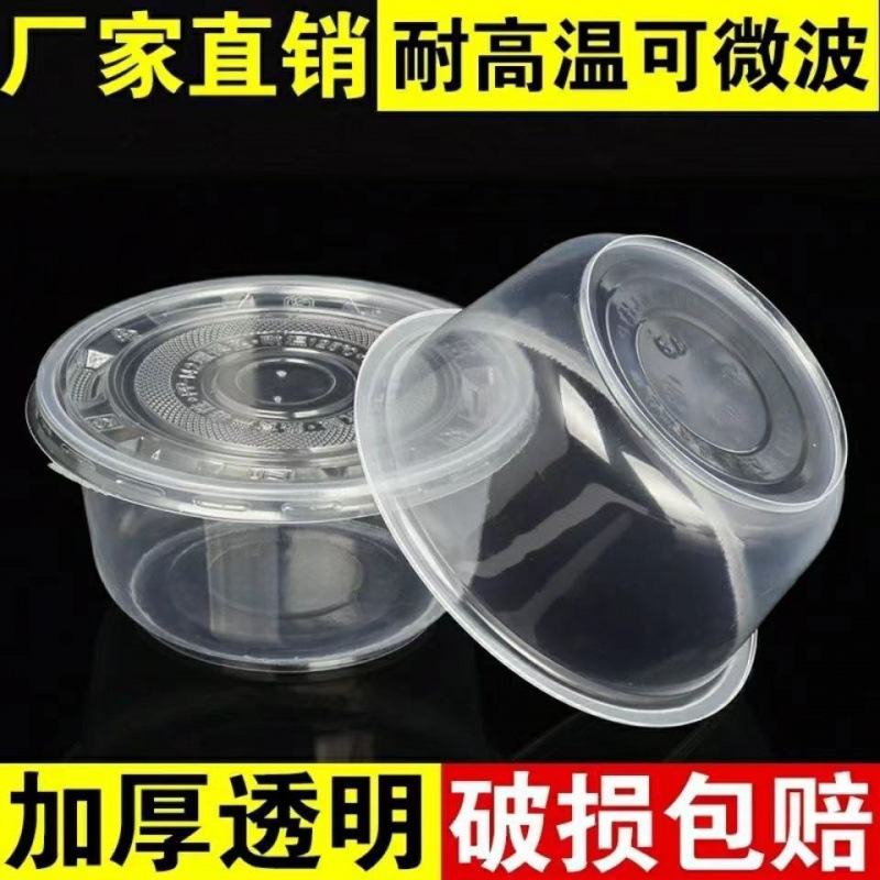 使い捨てのお椀のファーストフードの箱の氷の粉のプラスチックの包装の箱の丸い弁当の箱は蓋の家庭用の厚い丸い碗を持って出前します。