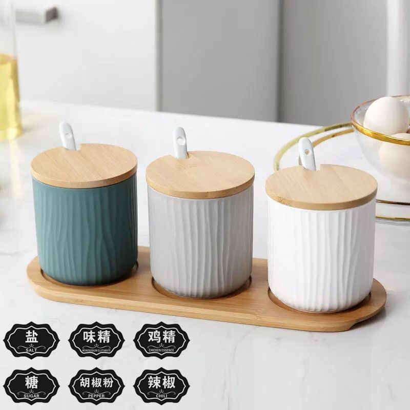 クリエイティブ家庭用キッチンセラミック調味缶レストランカプサイシン油瓶味の素塩五香粉砂糖入れ三点セット