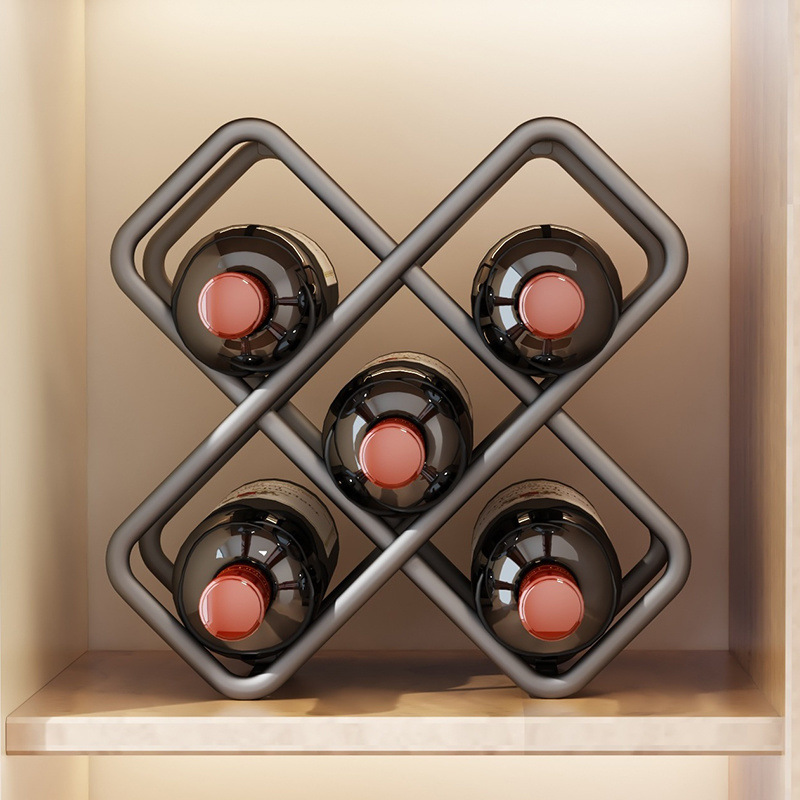 鉄芸のワイン棚の中の菱の形の置物の高級な家庭用の物置棚の客間の酒棚の展示棚は棚を置きます。
