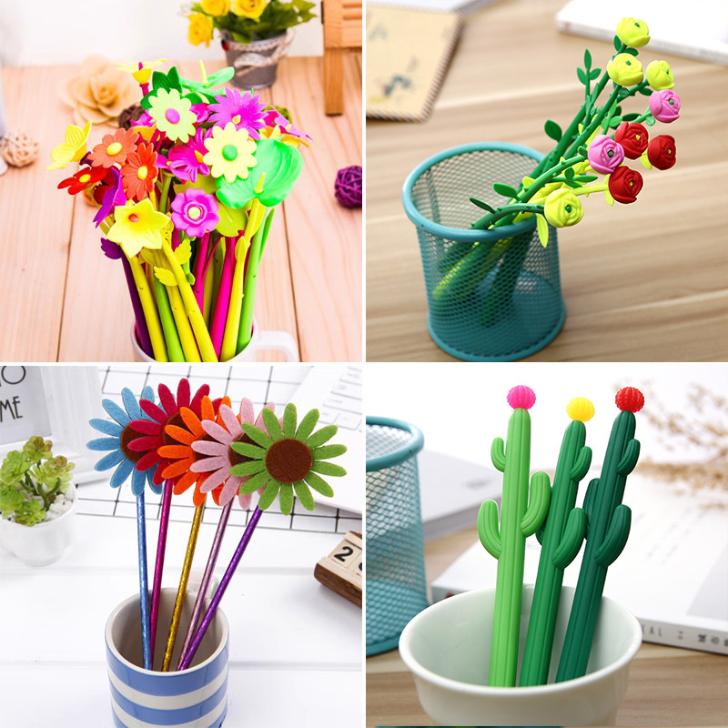 クリエイティブ文房具清新植物草花中性筆かわいい柔らかい草花型水筆学生賞品花筆