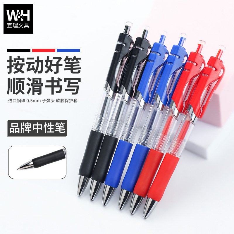 中性ペン水性サイン芯押し青黒赤ペン学生用試験炭素素子弾頭ボールペン
