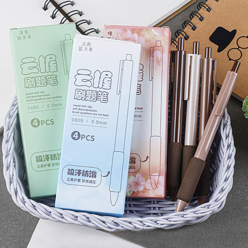 ソフト欧包雲グリップ中性ペン高颜値ST速乾学生ブラシ問題ペン押し式スポンジカバー黒ペン