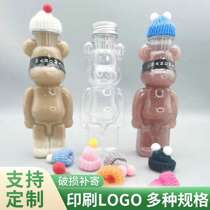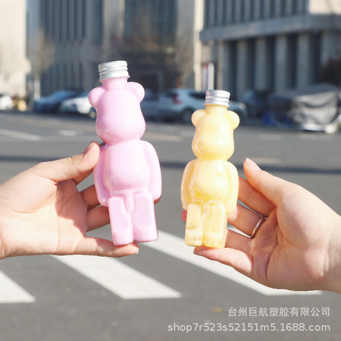400ml暴力熊透明petミルクティー冷たい飲み物ネット赤瓶アルミ蓋使い捨て携帯ジュースヨーグルト熊瓶