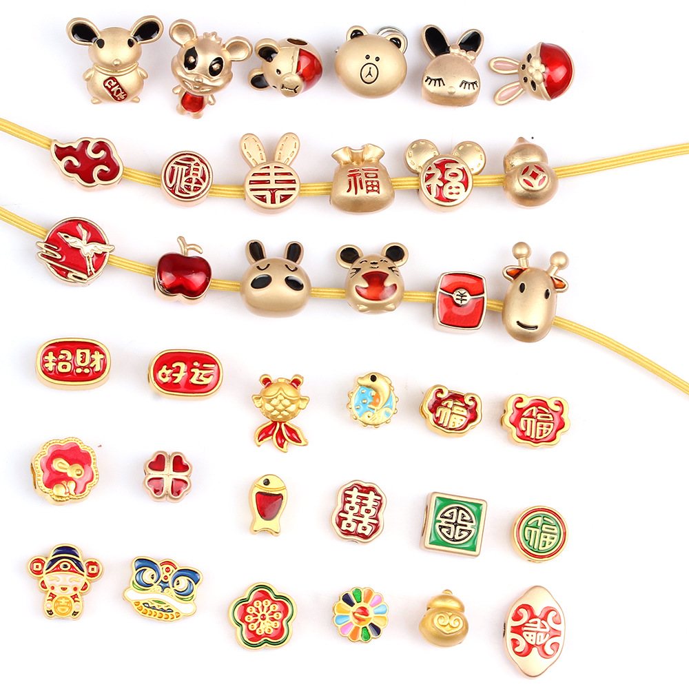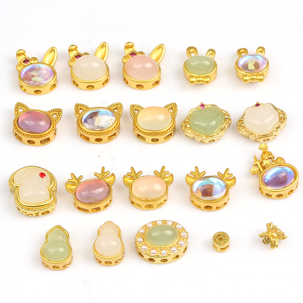 保色包金兎頭は玉路通十字穴鹿頭ひょうたんなどのdiyアクセサリーのビーズ部品をはめ込んでいる