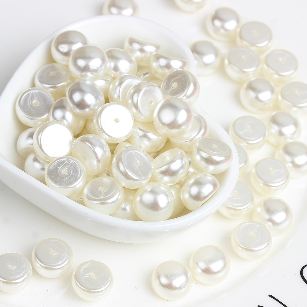 斤単位のABS製シングルホール・ハーフホールパン型イミテーションパール、ハーフホールパン型ベイクドパール、平底ハーフラウンド、厚みのある高光沢イミテーションパール
