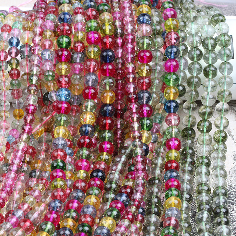 6-10mm人工水晶緑幽霊ガラス体キャンディー色虹氷種碧璽ビーズdiyアクセサリー部品