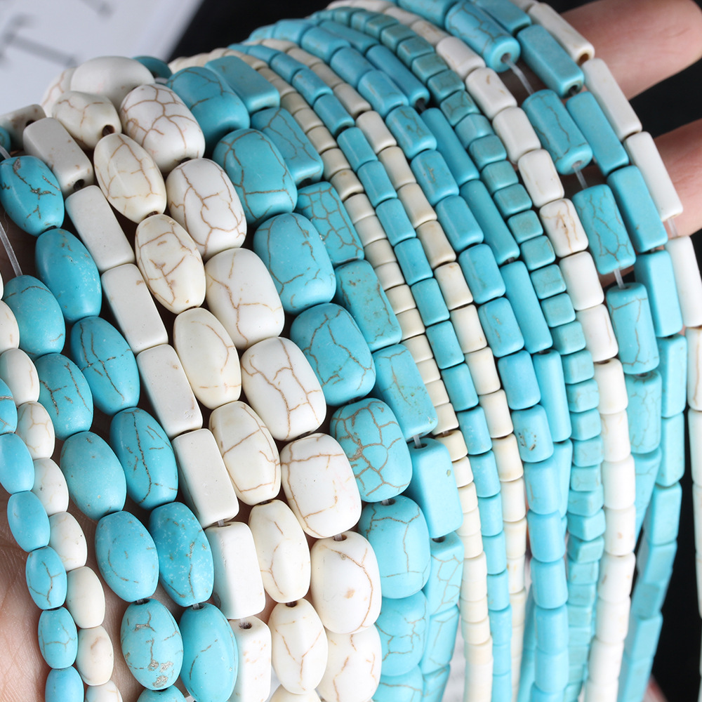 条緑松石桶珠白松柱散珠ビーズ半製品部品