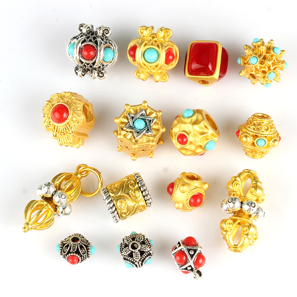 レトロなモザイク宝石透かし彫りボール合金メッキ金古銀点ドリルボールdiy文遊びアクセサリー部品