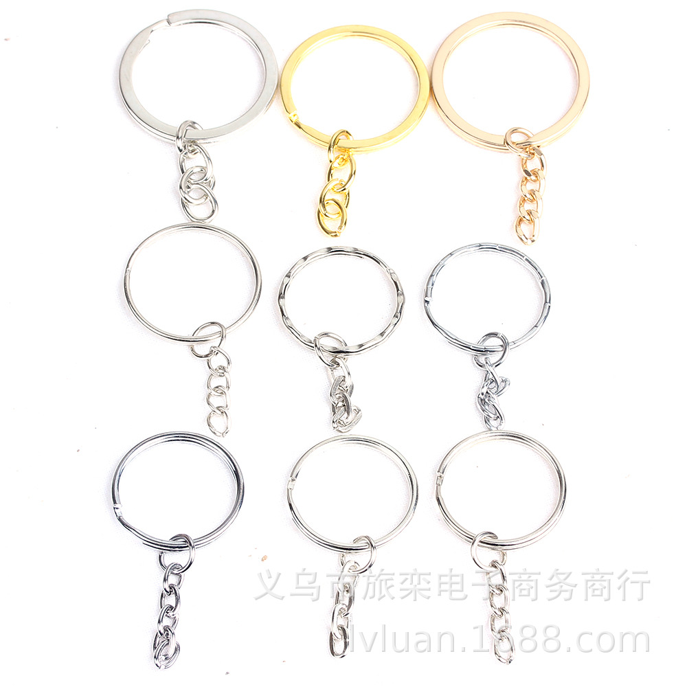 25mmエンボスリング金属リングキーホルダー絞り平リングキーホルダーチェーン付きDIYアクセサリー部品材料