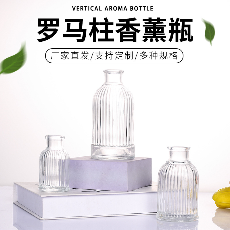 ローマ縦模様ガラスアロマボトル 50ml100ml 火を使わない籐ディフューザーボトルホテルフレグランス空ボトル