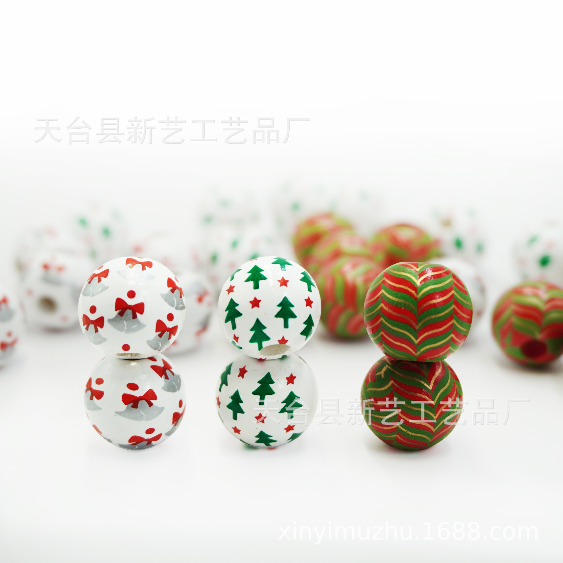 20MMホワイトプリント木製ビーズクリスマス雪だるまカラー木製ビーズDIYホーム祭り装飾木製ビーズ