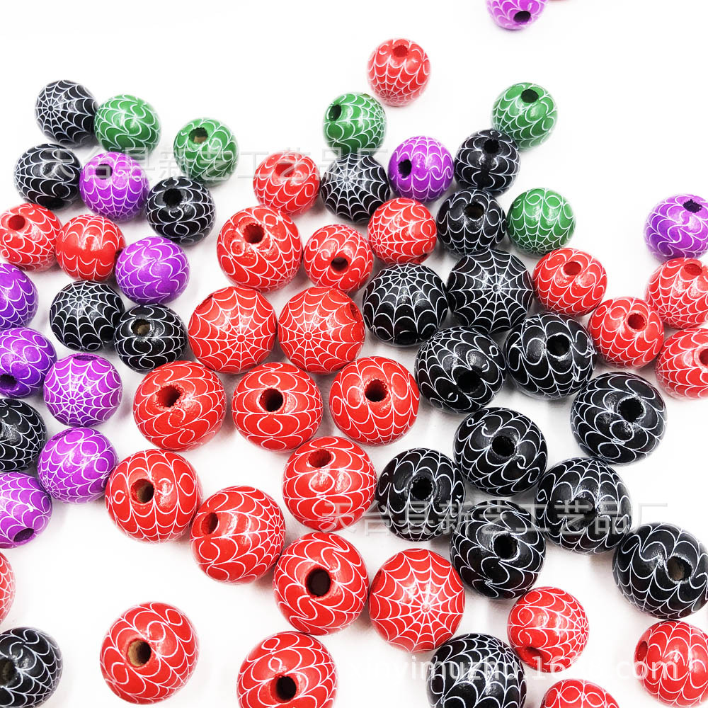 新型16mmハロウィーンクリスマス蜘蛛の巣鬼顔カラー木珠禾木散珠木珠串diy部品
