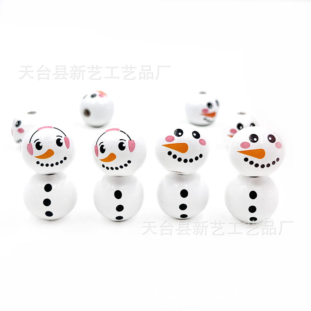 新芸20MM白色プリント木珠クリスマス雪だるまカラー木珠DIY家庭祝日装飾木珠