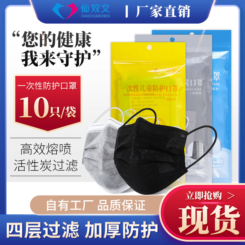 仙双文10匹の精包装マスクは4層の活性炭使い捨てマスクを厚くして、メルトブローン布マスクを含んで卸売りします。
