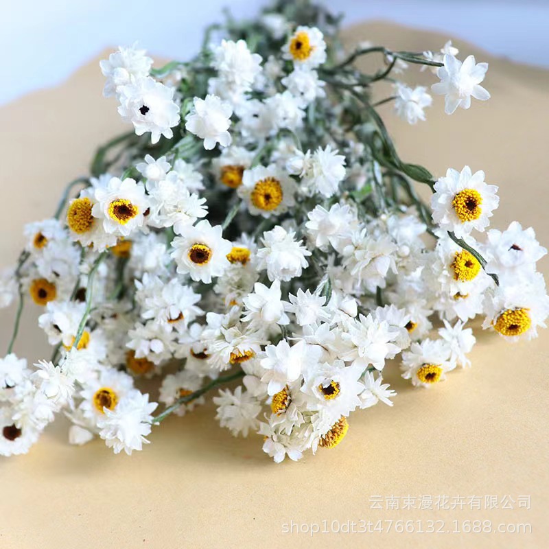 シルバーバッグ菊のドライフラワーブーケ、小さな白い花、不滅の花、ルダンバードフラワー、工場直送、国境を越えた卸売、手作りの本物の花