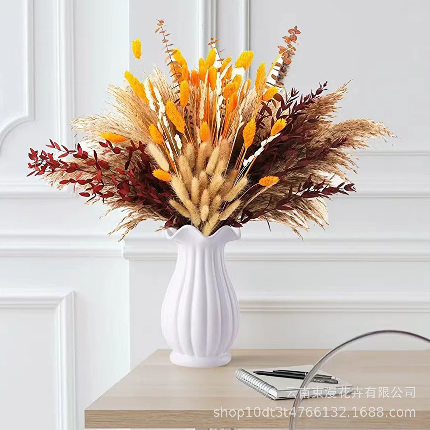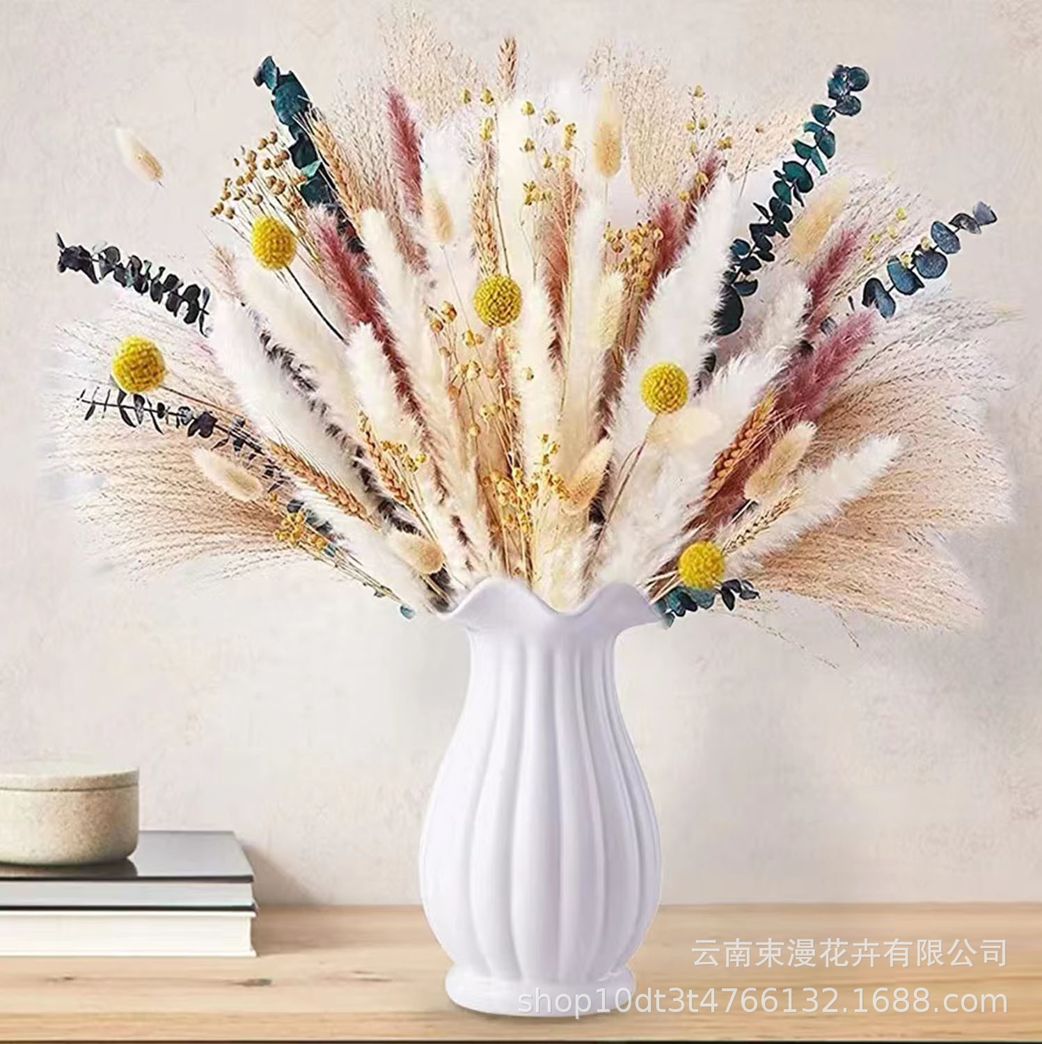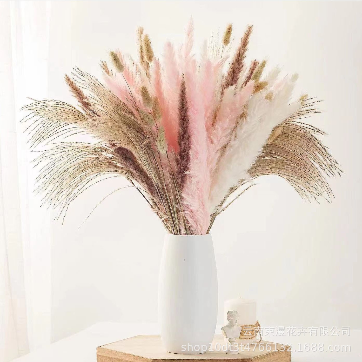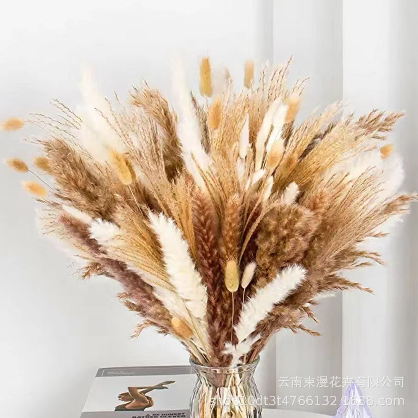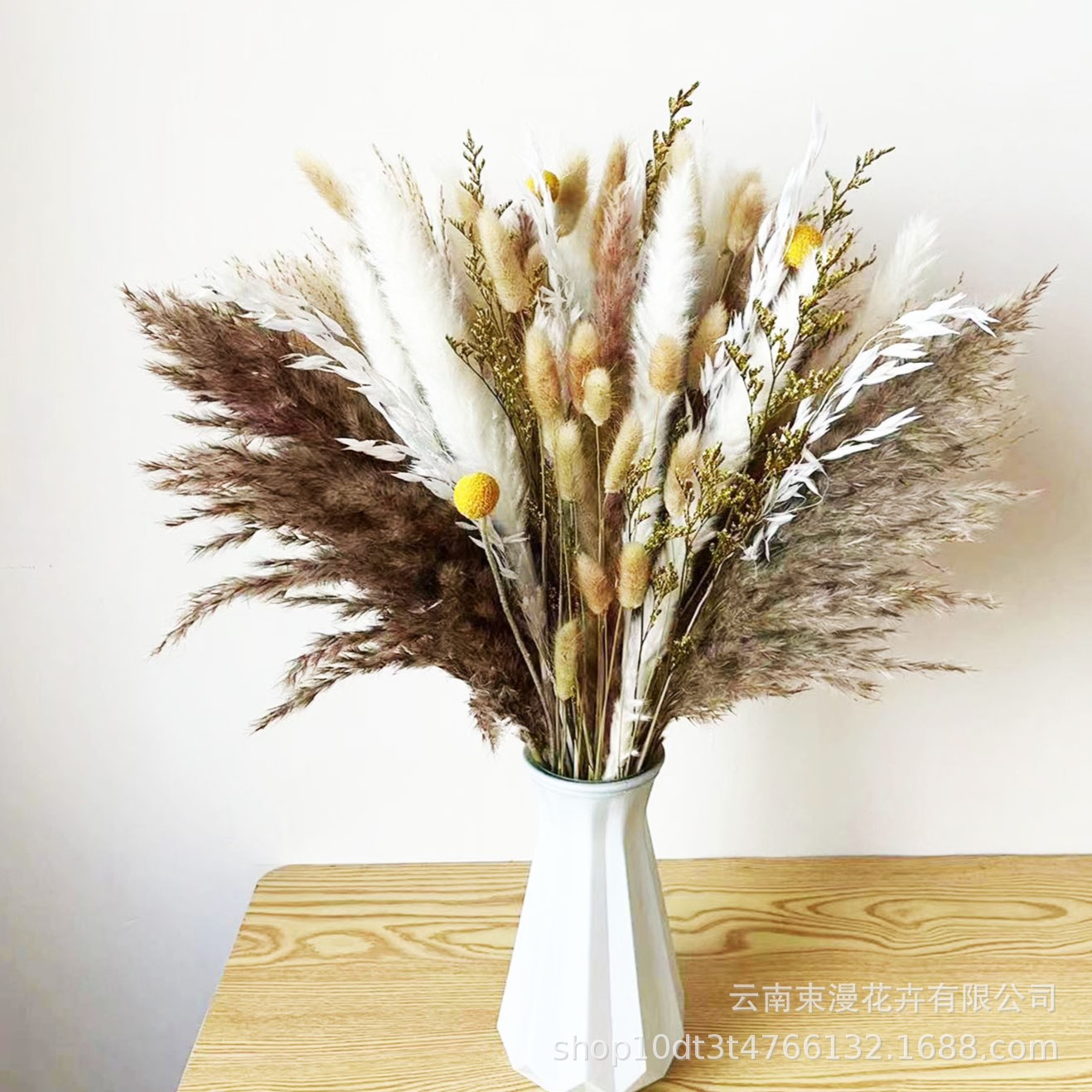 乾燥花葦の花束の組み合わせに花束を混ぜて花を飾ります。