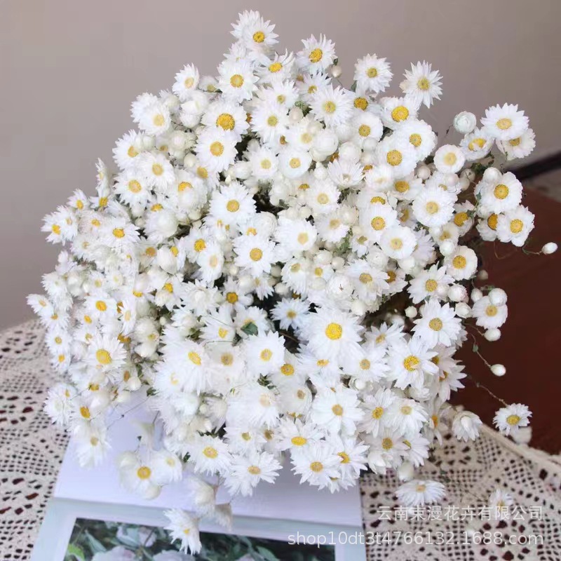 ソース工场ドライフラワーロダンス北欧森系シルバーバッグ菊ルダン鸟小さな白い花のデイジーの花束クロスボーダー卸売