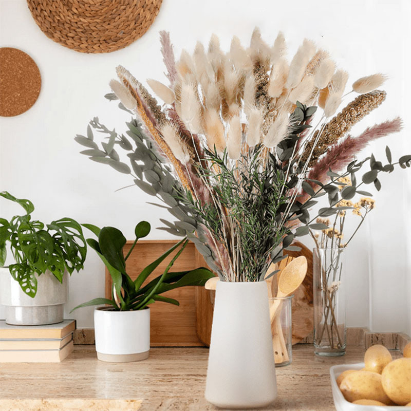 クロスボーダー100本の乾いた花の葦の花束パンパス草はウサギの尾草の麦のボヘミアン風の装飾を払います。