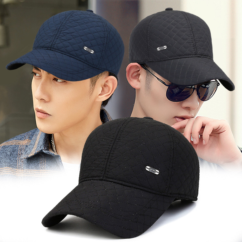 ベルベットの厚い菱格野球帽子男秋冬保温耳平頂帽戸外レジャー全封口鴨舌帽