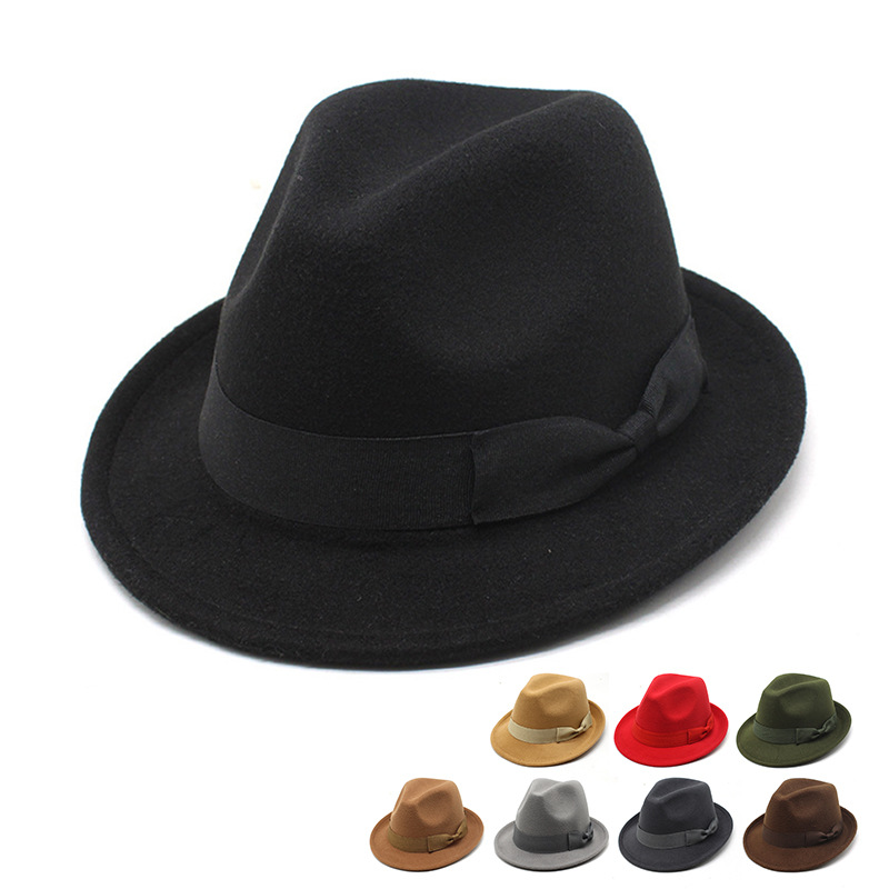 秋冬英倫レトロファッション蝶結び小礼帽男女巻き縁純色ジャズ帽カジュアル保温紳士帽