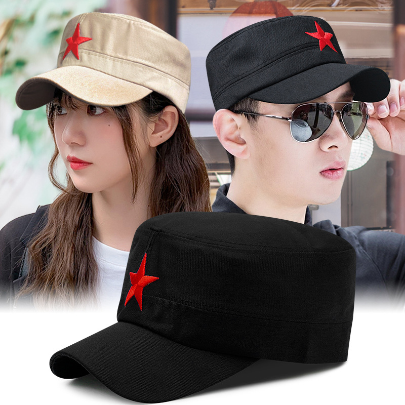 卸売りはスターの同じタイプの五角星の刺繍の平頂帽の男女の屋外の日よけの帽子を供給します。