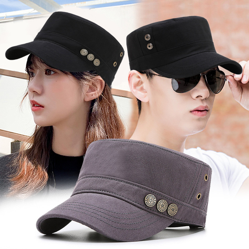 帽子男女屋外日焼け止め通気ボタン平頂帽シンプルレトロカジュアル軍帽ファッション百合レジャー帽