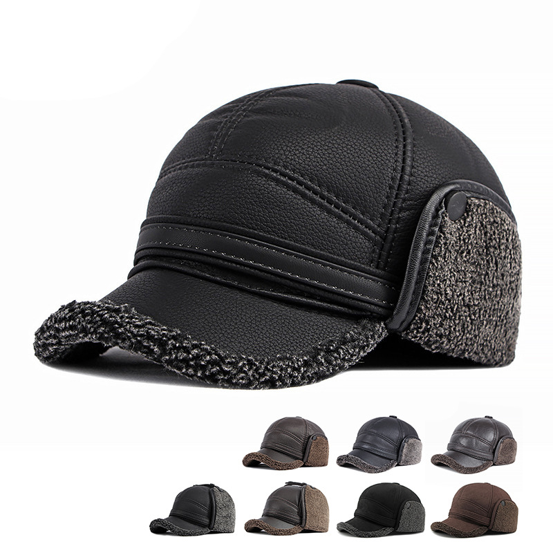 帽子男性冬耳保護厚手保温中高年野球帽pu革防風防寒ベルベットアヒル舌帽