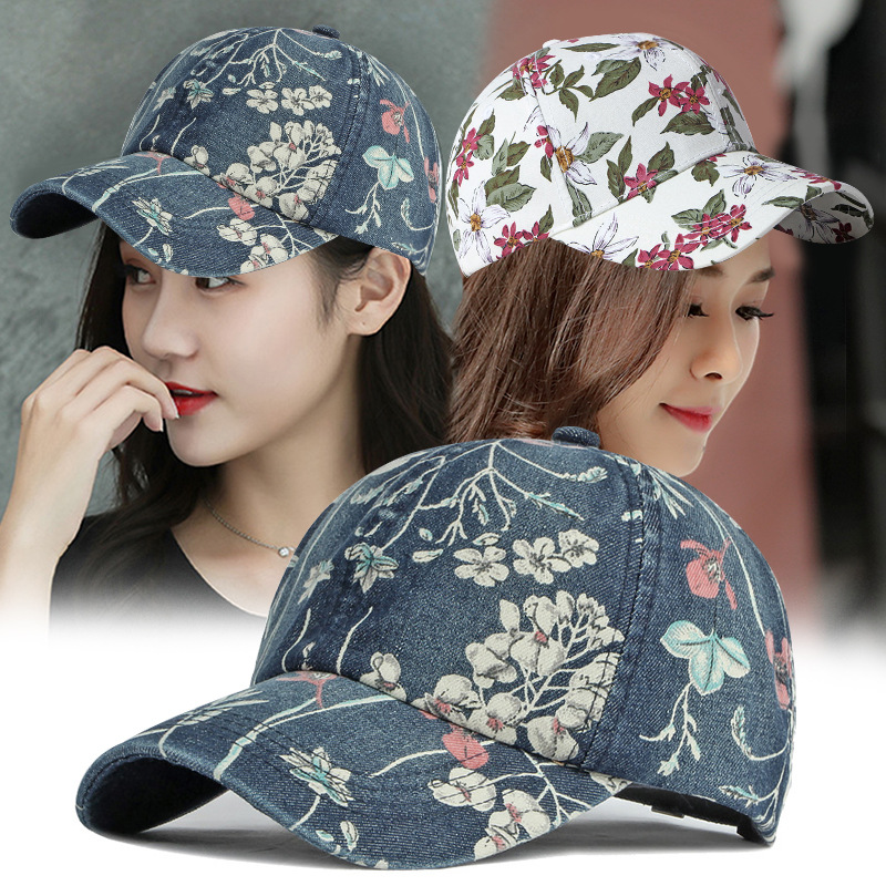 春秋民族風プリント野球帽女性屋外日焼け止め水洗いデニム鴨舌帽女性ファッション日除け帽